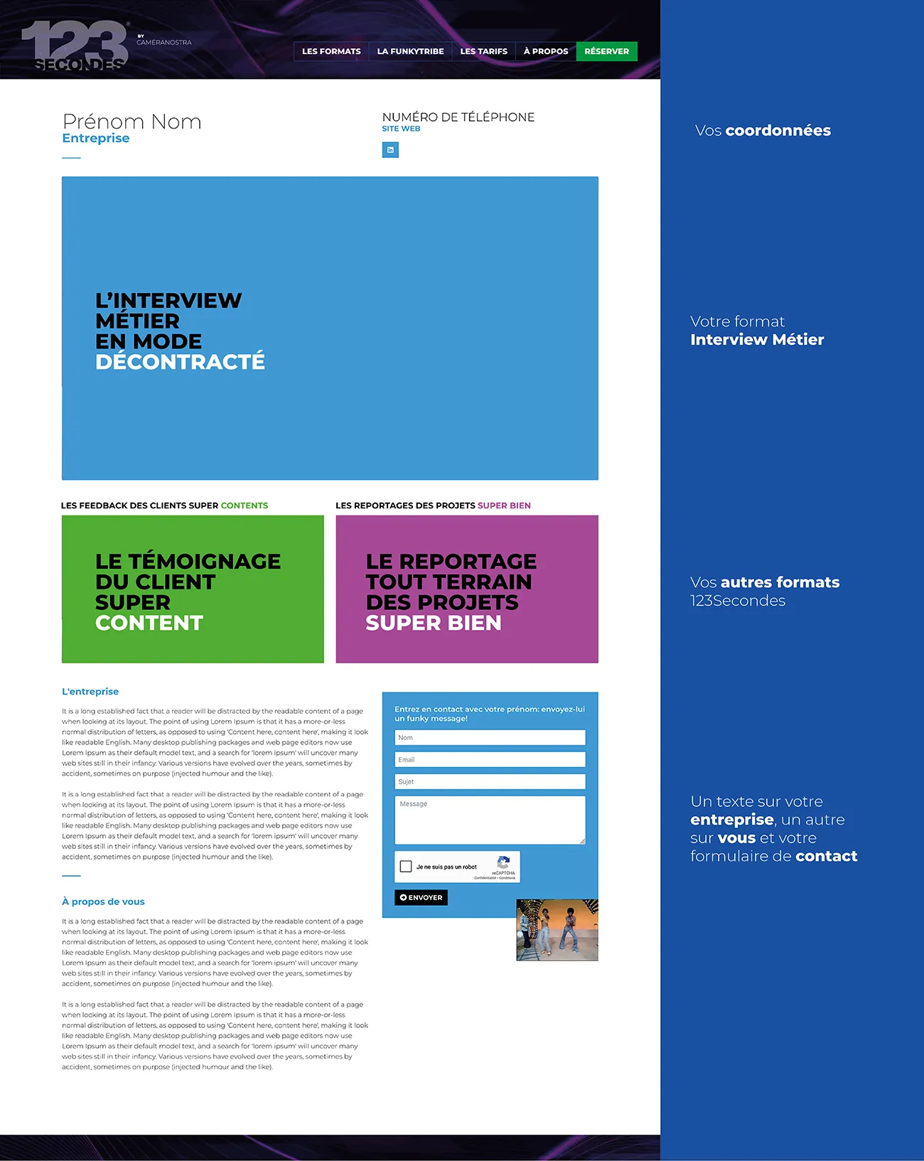 Chaque production de ce format inclut la création de votre page web dédiée sur le site 123Secondes.
